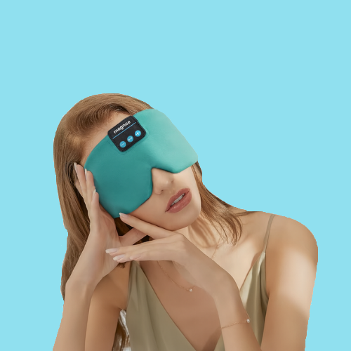Maski do spania Magnue jako jedyne na rynku mają wbudowane słuchawki, które pomagają szybciej się zrelaksować i zasnąć.